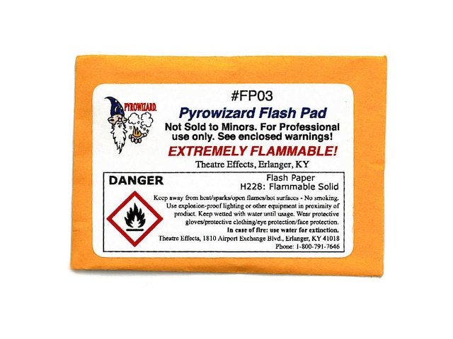 Pyrowizard™ フラッシュペーパーシート(8インチ×9インチ・4枚入り) — 大きな炎やインパクト演出に最適! 大型サイズ(約20cm×23cm)のフラッシュシートが4枚セットになっています。 ステージやパーティー演技、フラッシュガンやワンドなど火のギミックと組み合わせて、「一瞬でダイナミックな炎」を演出したい時に大変便利です。 好きなサイズ・形にカットできるので、用途や現象に合わせて自由に調整可能 火をつけるとすぐに鮮やかなオレンジ〜イエローの炎で一気に燃焼し、煙や灰がほとんど残りません 各種ファイヤーギミックや特殊効果との併用、消耗品リフィルとしてもぴったりです 使う際は環境と安全に十分お気をつけください。 舞台・クロースアップ・イベントなど“インパクト重視の演出”を可能にする、プロ仕様のフラッシュペーパーです。