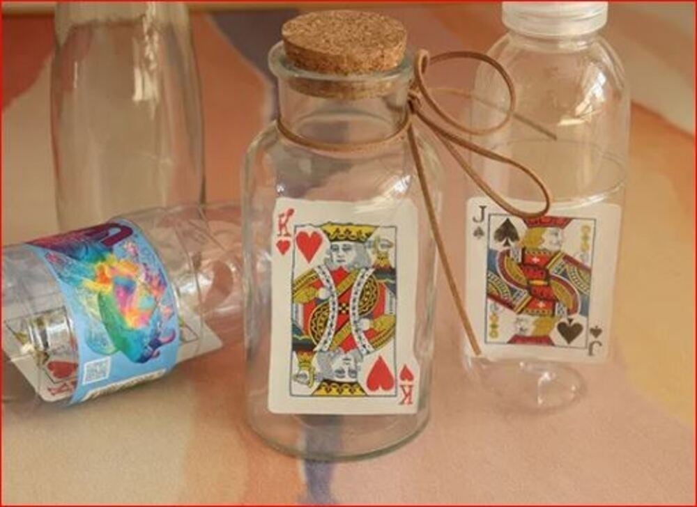 ・使うボトルは透明ガラス/プラスチックどちらでもOK(口が広めでカードが入るサイズ推奨)。