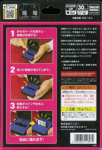 指輪やコインを出したり、消したり、変化させたりと、不思議なマジックが自在にできる驚異のリングボックス。