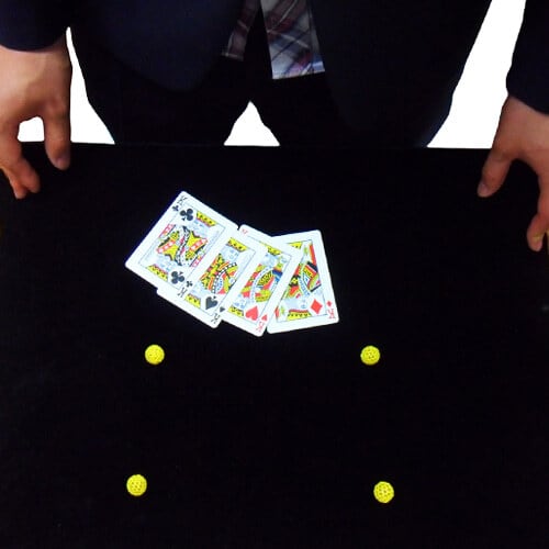 4個のボールを1個ずつ置き、それぞれのボールの上に