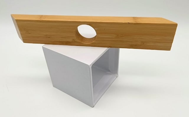 標準のワインボトルのネックをストレートウッドのの穴に挿入するだけです。